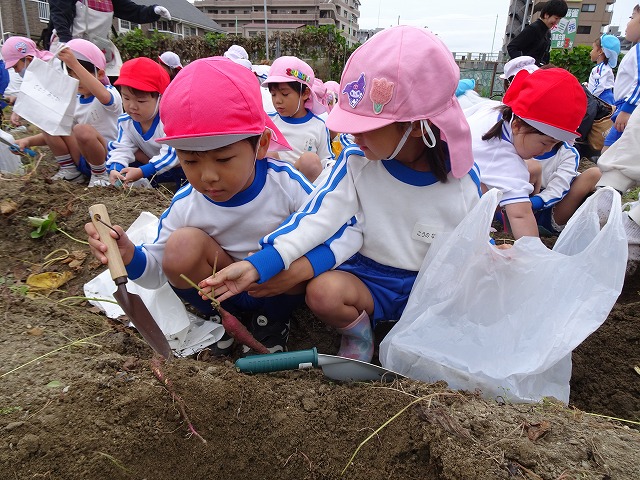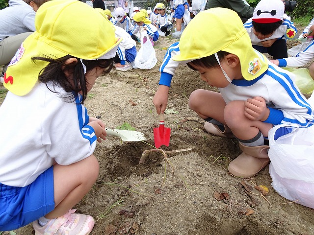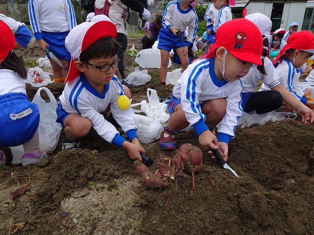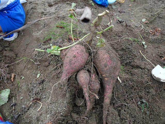 なかなか掘れずに苦戦したけど、お友達や係の方と一緒の掘って大きなお芋も掘ることが出来ました!!