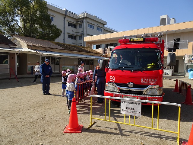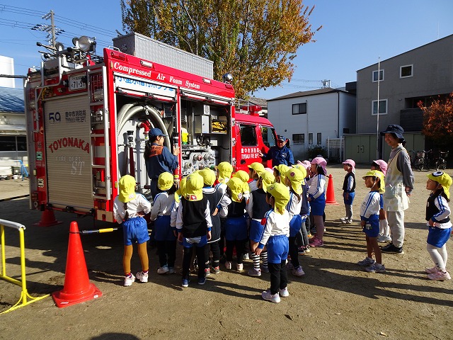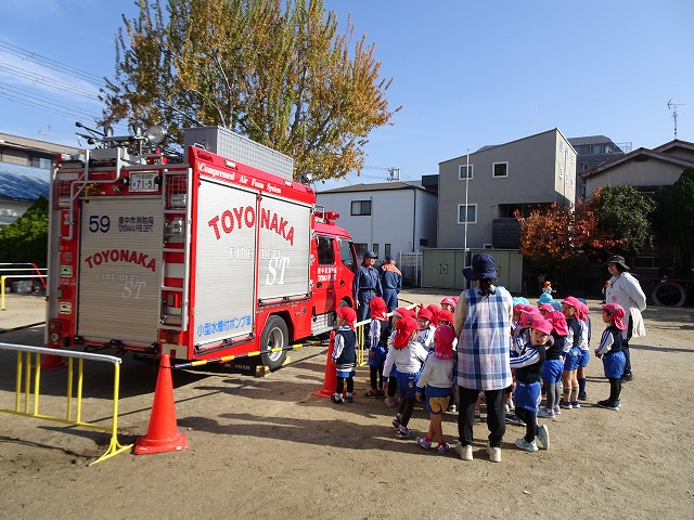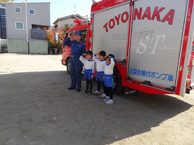 本物の消防自動車を見ることが出来、とても嬉しかったのと、消防士さんのかっこいい姿に憧れたみんなでした(#^.^#)