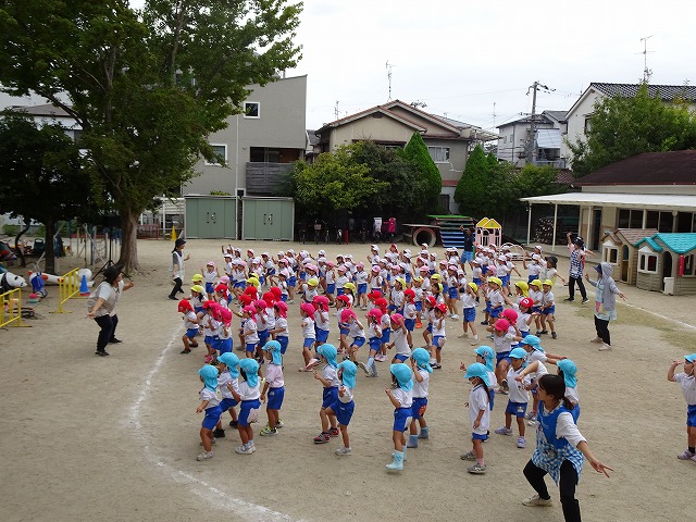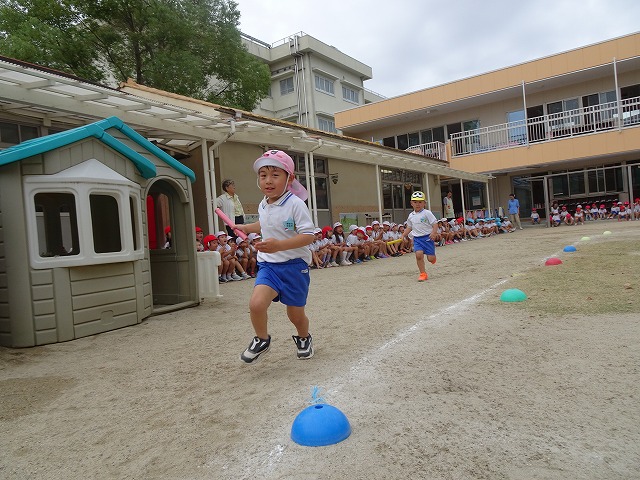 運動会を終え、他学年のお友達がしていた演技や競技を全園児で楽しみました。