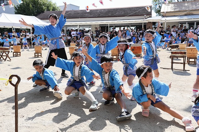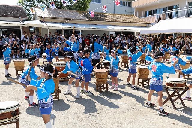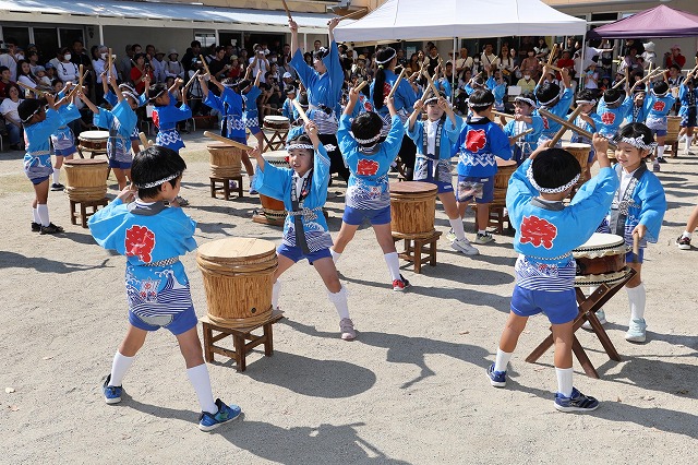 音を一つにそろえ打ちならした「なかよし太鼓」に元気いっぱい踊った「ソーラン節」